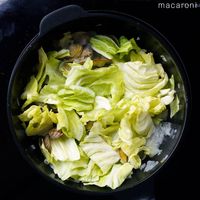 キャベツを加えて油が回るまで炒めます。