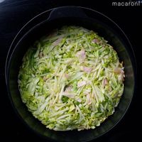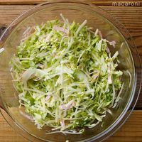 ・キャベツとじゃがいもは千切りにします。