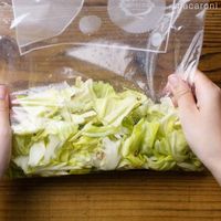 ジッパー付き保存袋に、すべての材料を入れて軽くもみ、全体を馴染ませます。