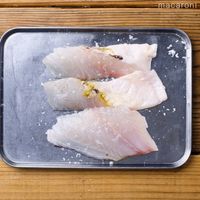 鯛に塩を両面まぶし、5分おいて水分を拭き取ります。