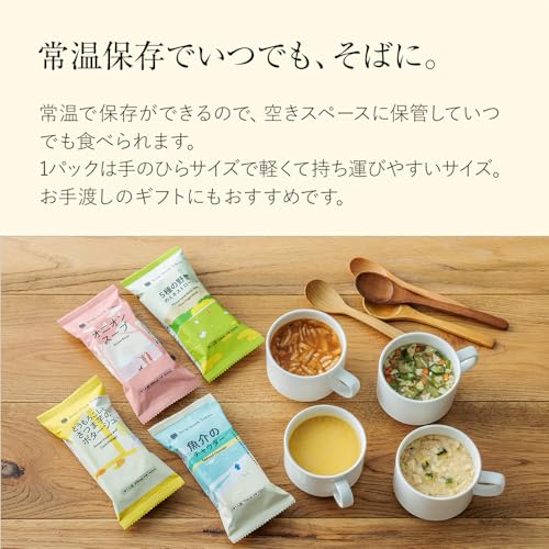 フリーズドライは、素材の風味やだしの旨味を大切にしながら、香りまで楽しめる一杯に仕上げられています。具材の食感を楽しめるスープや、なめらかなポタージュ、やさしい味わいのおかゆまで、バリエーション豊かに味わえるのが魅力です。