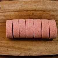 形を整えたらクッキングシートで巻き、冷蔵庫で1時間以上しっかり冷やします。
