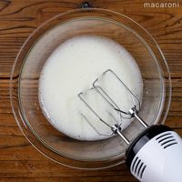 グラニュー糖を3回に分けて加え、その都度ハンドミキサーで混ぜます。