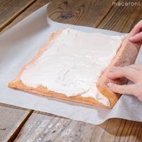 冷めた生地の巻き終わり部分を1cmほど斜めに切り落とします。