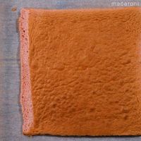 焼きあがったらケーキクーラーにのせ、側面の立ち上がり部分のクッキングシートを外します。乾燥しないようクッキングシートまたはラップをのせて冷まします。