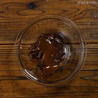 チョコクリームを作ります。ボウルにチョコレートを入れて、レンジ600Wで30秒加熱して溶かします。