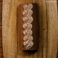 口金をつけた絞り袋に残りのクリームを入れ、ロールケーキの上に絞ります。