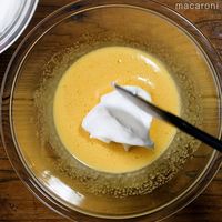 卵黄を混ぜたボウルにメレンゲの1/3量を加え、混ぜます。