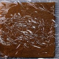 焼きあがったらケーキクーラーにのせ、側面の立ち上がり部分のクッキングシートを外します。乾燥しないようクッキングシートまたはラップをのせて冷まします。