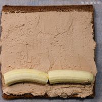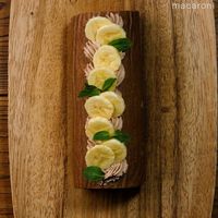 ・バナナはロールケーキ型に合わせて長さを切り、残りはトッピング用に薄切りにします。