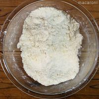 バターを加え、両手でこすり合わせながらポロポロの状態になるまで混ぜます。