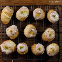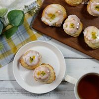 スコーンの表面に塗り、ピスタチオダイスをのせます。
