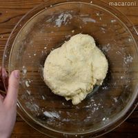 粉っぽさがなくなったら、手でひとまとめにします。