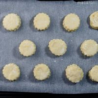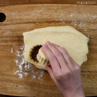 型で抜き、残った生地をまとめてのばし、同様に型で抜きます。