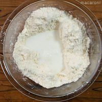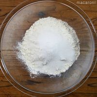 ボウルに薄力粉、ベーキングパウダー、グラニュー糖、塩を入れて混ぜます。