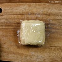 2cmの厚さに伸ばしたらラップで包み、冷蔵庫で1時間以上休ませます。