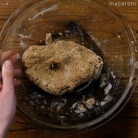粉っぽさがなくなったら、手でひとまとめにします。