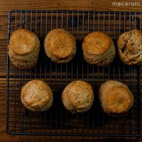 打ち粉をした台にのせ、生地を厚さ2cmに伸ばして型で抜きます。残った生地をまとめてのばし、同様に型で抜きます。