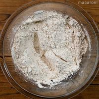 ボウルに薄力粉、ベーキングパウダー、スパイスをふるい入れます。