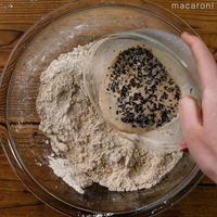 グラニュー糖、塩、紅茶の茶葉(1袋)を加えて、全体を混ぜ合わせます。