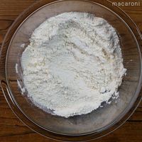 ボウルに薄力粉、ベーキングパウダー、グラニュー糖、塩を入れて混ぜ合わせます。