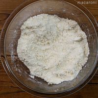 バターを加え、両手でこすり合わせながらポロポロの状態になるまで混ぜます。