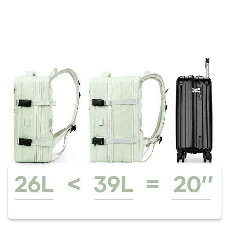 プチ旅行や出張には収納力のあるリュックがベター。Gaoaoの拡張機能付きリュックなら26Lリュックがあっという間に39Lの大容量に変身できます。リュックでありながら、Sサイズのスーツケースと同等のサイズ感が魅力です。