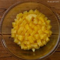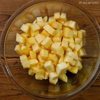 りんごは皮をむいてサイコロ状に切ります。