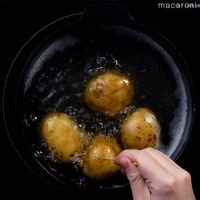 新じゃがいもは水から加熱し、串がスッと通るまでゆでます。