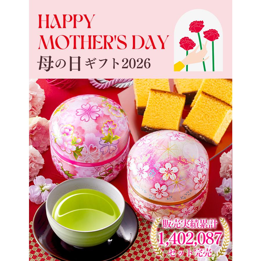 こちらも母の日だけの特別仕様。レトロかわいいパッケージに、素材にこだわった長崎のカステラと日本茶がセットになったギフトです。おしゃれなメッセージカードも高ポイント。