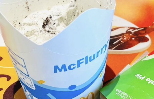 SNSではそんな「ホットアップルパイ」を、「マックフルーリー®」にダイブさせて食べるのがひそかに人気。たしかに合わないことはなさそうですが、甘すぎたりくどかったりしないのでしょうか?実際に試してみたいと思います。