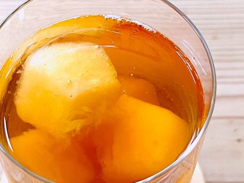 ジャムを製氷皿に入れて凍らせ、アイスティーと合わせれば完成です。