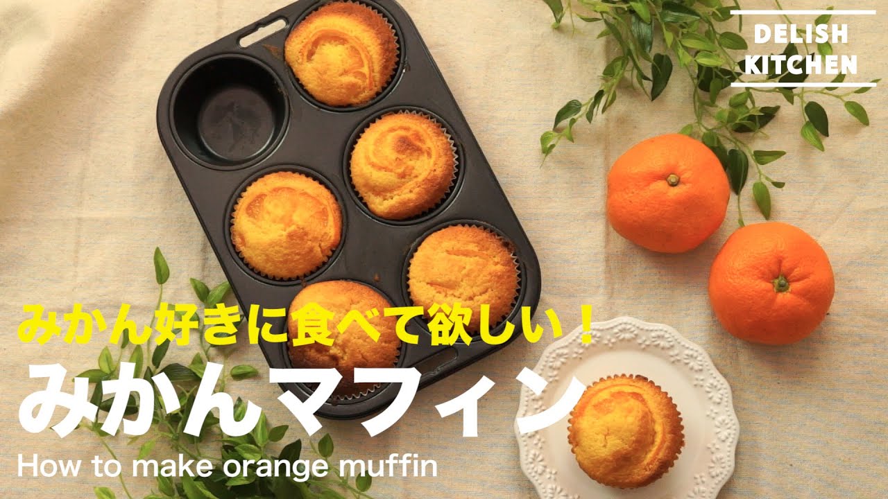 8. 生地をマフィン型に流し込み、飾用のみかんをのせる