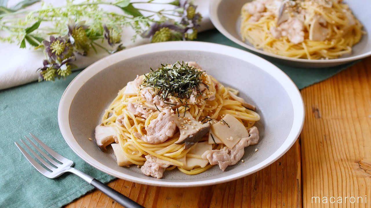 7. 風味豊か。豚肉とエリンギのバターじょうゆパスタ