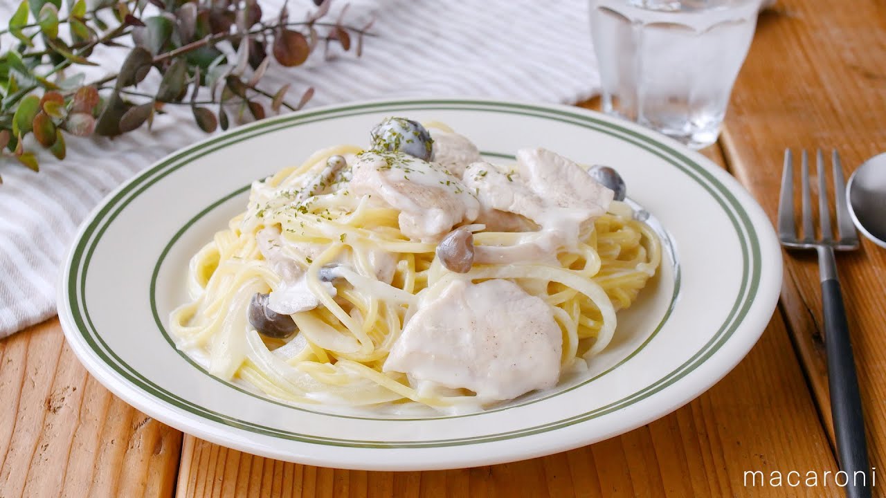 15. マイルドさ。鶏むね肉ときのこのクリームパスタ