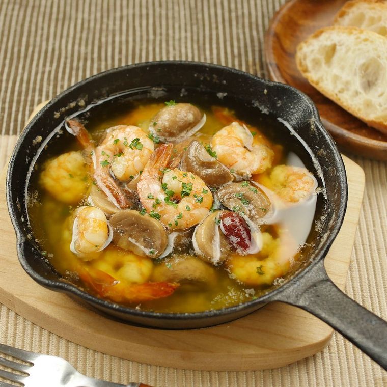 エビのアヒージョ、タコのアヒージョ、牡蠣のアヒージョ……さまざまな食材で作れて見栄えもよいひと品ですが、自宅ではちょっと作りづらいですよね。