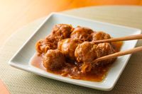 ミートボールの形がくずれないよう、肉ダネは粘り気が出るまでしっかりとこねましょう。