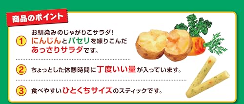 スティックよりも小さなサイズを小さい、ひと口サイズのじゃがりこです。味わいは定番のサラダ味。小包装されていて4つセットになっているので便利ですよ。おやつを配ったり、お子さんのおやつとして出すのにいかがでしょうか?