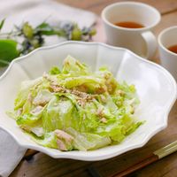 ツナ缶、マヨネーズ、ポン酢しょうゆ、白すりごまを加え、全体に混ぜ合わせたら、かいわれ大根を加えて軽く混ぜます。器に盛り付けたら、できあがりです。