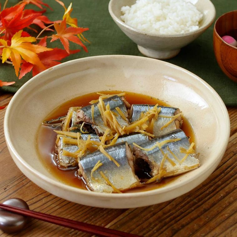 フライパンにオリーブオイルとにんにくを入れて弱火で香りが立つまで炒めます。さんまを両面焼き色がつくまで焼き、(a) を入れて全体に絡めます。