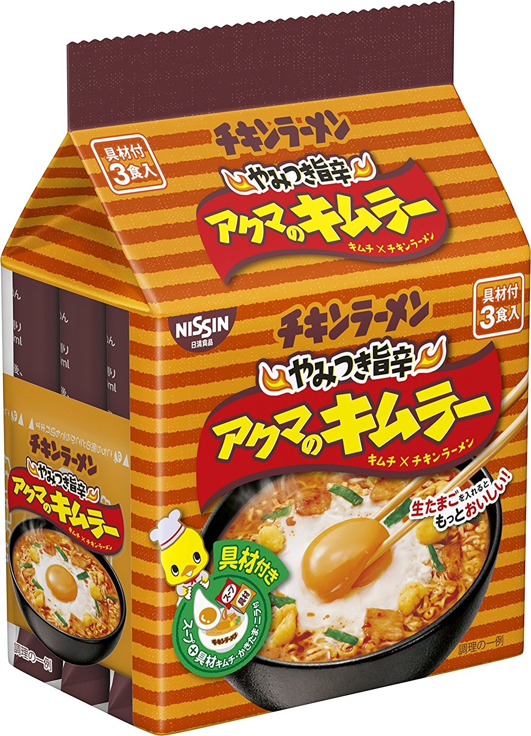 アクマのキムラーを作ってみたいけど、ニラやキムチを買うのは……という方にはやっぱり本家の「アクマのキムラー」が便利!元祖「チキンラーメン」と同じように、卵だけ用意すればいいので、食べたいときに簡単に作れますよ。