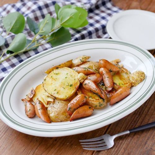 フライパンにバターをひき、じゃがいもを並べて、弱火~中火で表面を焼きます。