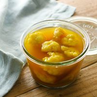 具材はカリフラワーだけの、とてもシンプルなコンソメスープです。味付けは、コンソメキューブと塩だけ。カリフラワーの味わいや食感が感じられるひと品なので、旬の季節にいかがでしょうか?