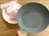 お肉はカッチカチのものを用意して大丈夫です。今回は厚さ1cmくらいのものを使っていますが、厚くなればなるほど時間は必要になります。