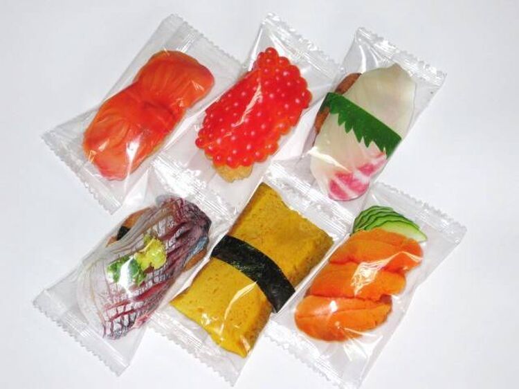 お菓子屋ニューエストの「寿司あられ」をご存じでしょうか。お寿司なの?あられなの?実は寿司あられとは、新鮮な寿司ネタがフィルムに印刷された「あられ」なんです。まるで本物かと見間違うような見た目で外国からの観光客にも人気のようですよ。