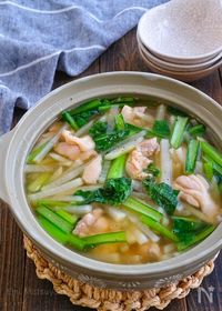 7. 彩りがいい。豚バラ肉と小松菜の中華スープ