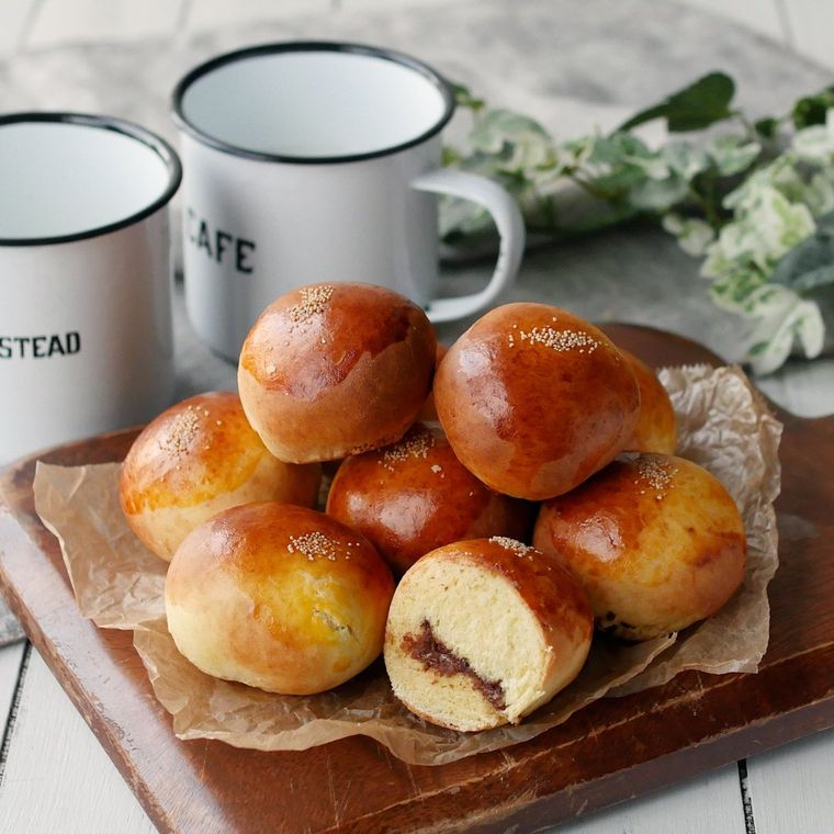 さつまいものホクホク感と、蒸しパンのやわらかさが非常にマッチするレシピ。適度な粘り気と、強い甘味がパン生地全体をふわっと包み込みます。クリームチーズで濃厚さをプラスするのがポイント。黒いりごまを加えることで、さつまいもの甘味がより引き立ちます!
