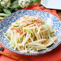 レンジでパパッと簡単に作れる中華サラダです。もやしをレンジで加熱し、きゅうりとハム、調味料と合わせるだけ!もやしの水気をしっかり切ると、味が薄まってしまうのを防げますよ。シャキシャキ食感で甘酸っぱい味わいのサラダは、箸休めにぴったり。