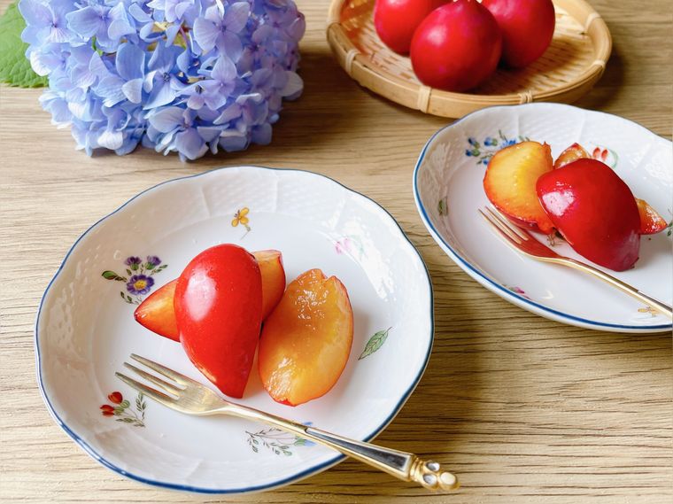 すももは熟すにつれて赤みを帯び、実がしんなりしてやわらかくなります。食べるのにちょうどよい甘さになるにつれ、豊かな甘い香りが漂ってきますよ。完熟のすももは日持ちしないので、3〜5日以内に食べるようにしてくださいね。