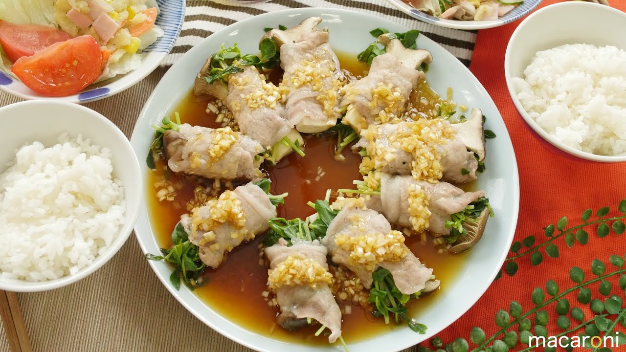 豆苗とエリンギの豚ロース巻きのレシピ